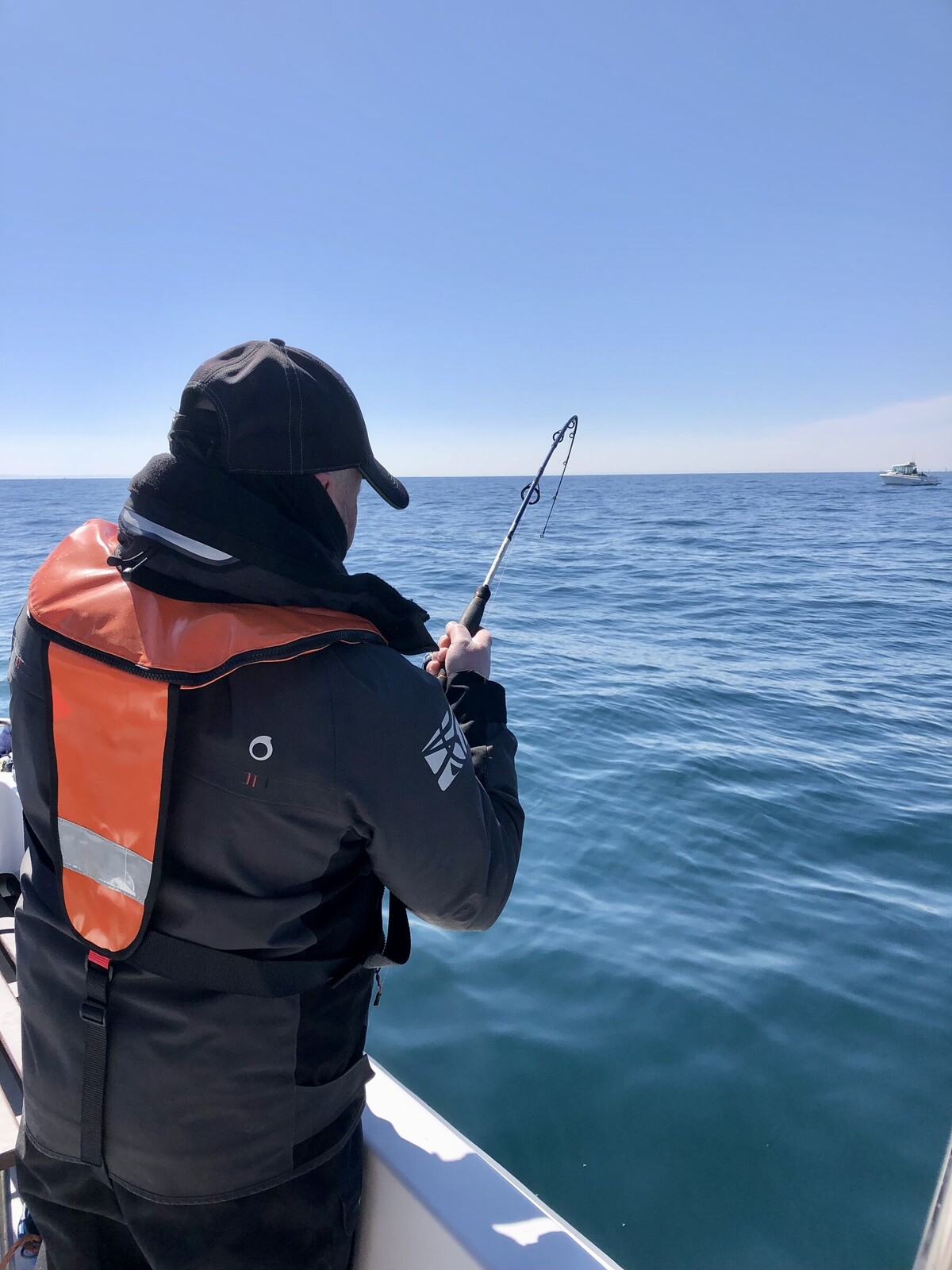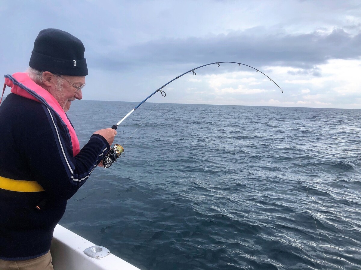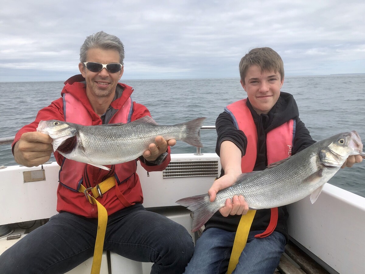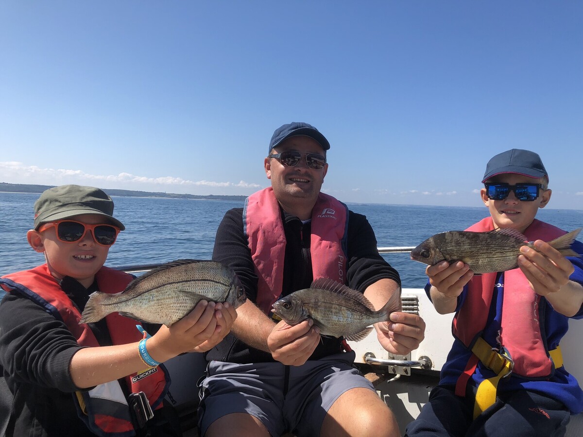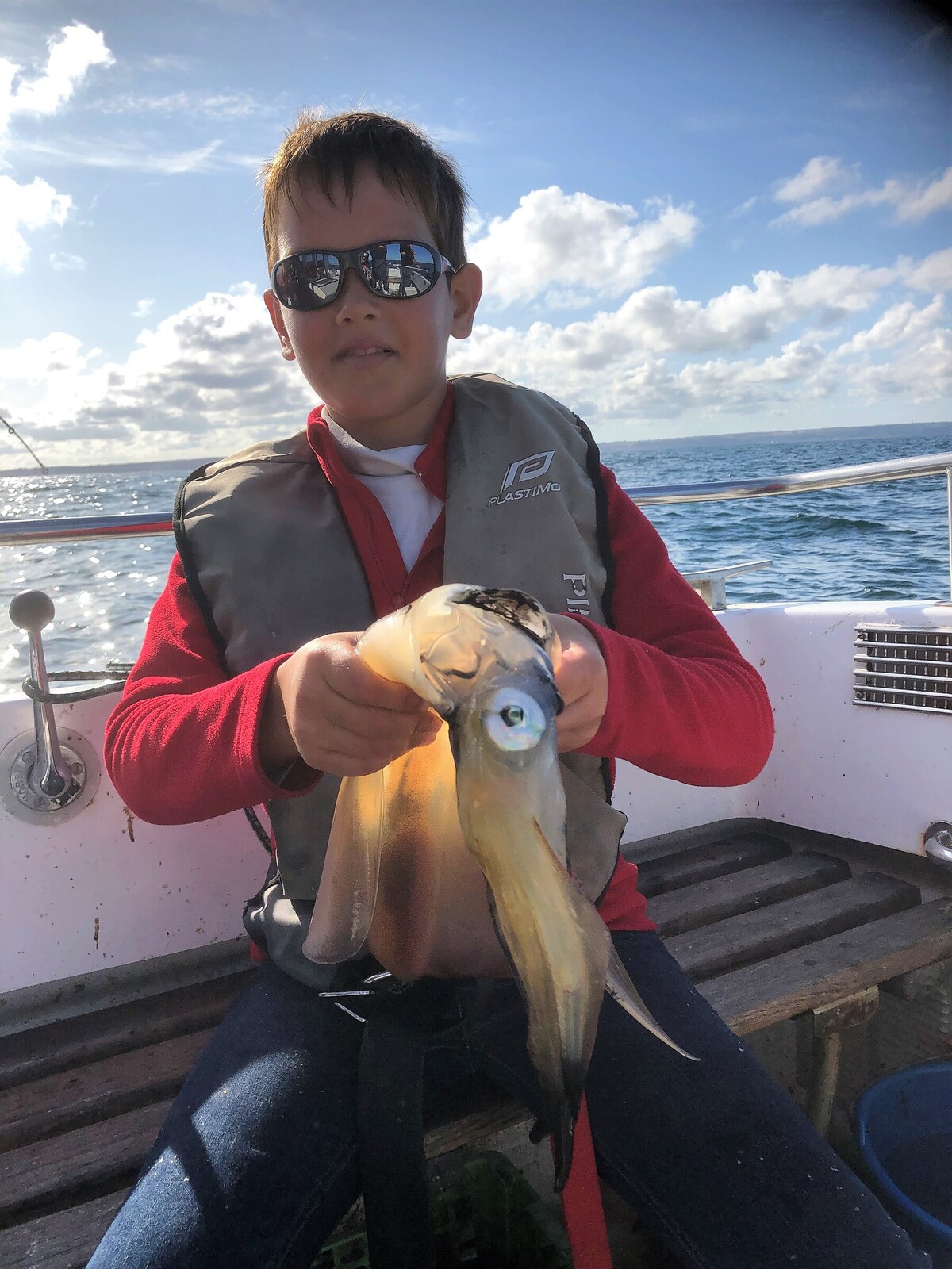Pêche en mer à bord d’un bateau ou Pêche du bord par un guide de pêche diplômé jeunesse et sport au départ du port d’Erquy ou Pléneuf Val André.